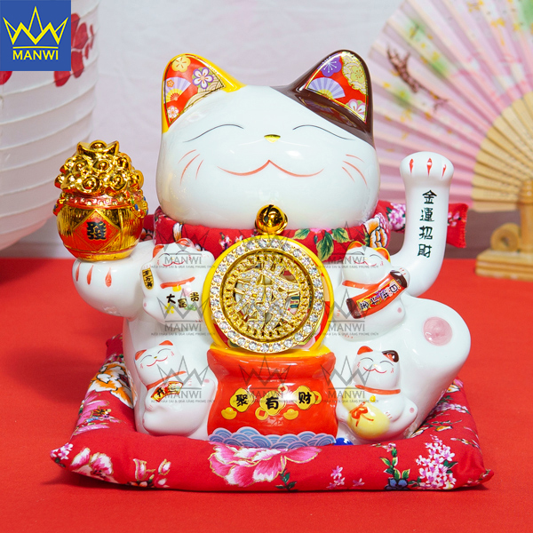 Mèo Thần Tài Đổi Vận Giàu Sang mang ý nghĩa kinh doanh làm ăn suôn sẻ như ý, tài lộc tấn tới, tiền tiêu rủng rỉnh, quanh năm no đủ. Mèo may mắn thích hợp tặng dịp khai trương cửa hàng, tân gia …thay cho lời chúc gia chủ sớm ngày phát tài.