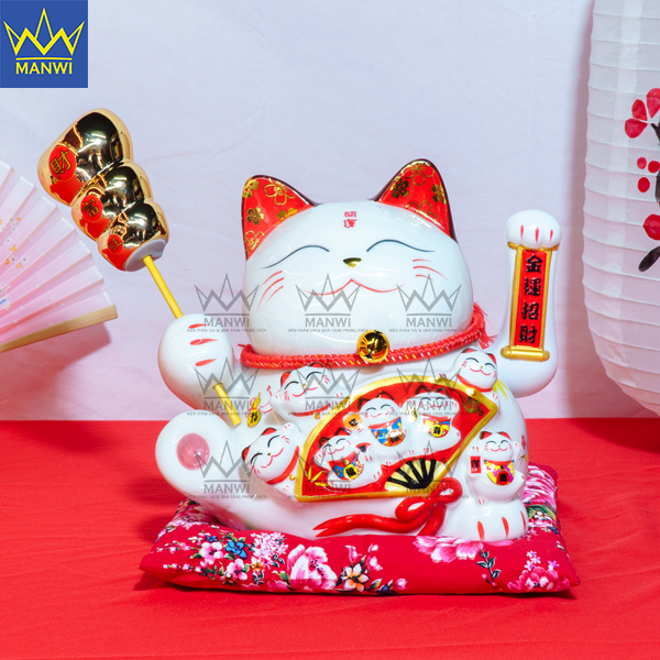 • Tay trái của chú mèo vẫy tay liên tục mượt mà với bộ khung chắc chắn cùng với dòng chữ “Kim Vận Phát Tài” với ý nghĩa liên tục mời gọi may mắn, tiền tài của cải dồi dào.