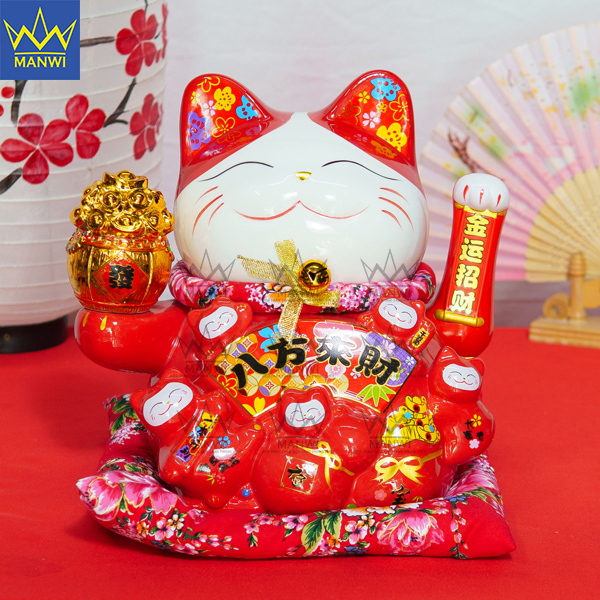 Mèo Thần Tài Kim Tiền Đại Phát Tài có nguồn góc đến từ Nhật Bản. Mèo thần tài hay còn gọi là Maneki-neko, là biểu tượng của sự may mắn trong văn hoá của người Nhật Bản. Là một nơi có tín ngưỡng cao, cùng với những truyền thuyết liên quan đến những chú mèo thần tài. Ta hoàn toàn có thể tin tưởng rằng đây là món đồ phong thuỷ không chỉ là để trang trí, mà nó còn mang giá trị tinh thần rất cao. Là món đồ phong thủy giá trị nên Manwi luôn cẩn thận, đảm bảo chất lượng đến với khách hàng. Ngoài ra, mèo thần tài còn được tặng kèm theo chiếc hộp rất xinh; chiếc hộp có những hoa văn thích hợp để làm quà tặng trong những dịp đặc biệt.