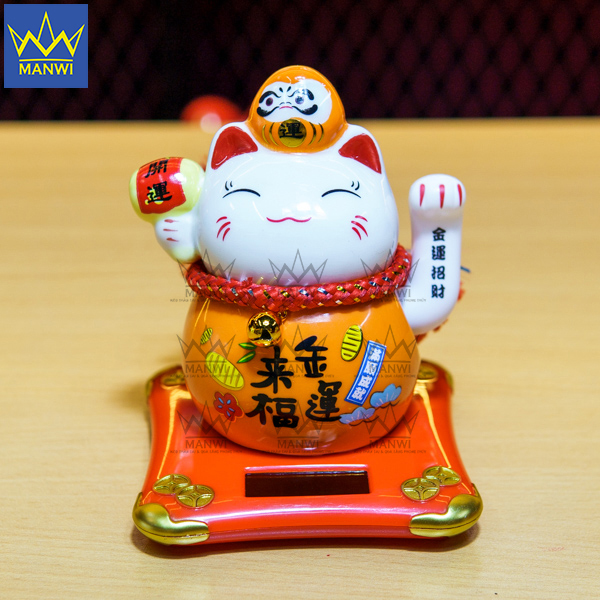 Mèo Thần Tài Vẫy Tay Khai Sắc Daruma là chú mèo có thiết kế đặc biệt. Khi có có hai biểu tượng may mắn trong cùng một vật thể. Ở Nhật bản, có 2 vật phong thuỷ rất nổi tiếng đó là Maneki-nekoDaruma. Cả hai đều có công dụng ban phước tài lộc, may mắn cho người sở hữu. Nhưng nay nó đã được xuất hiện chung với nhau, hứa hẹn sẽ mang lại rất nhiều điều tốt đẹp đến với gia chủ. Là món đồ phong thủy giá trị nên Manwi luôn cẩn thận, đảm bảo chất lượng đến với khách hàng. Ngoài ra, mèo thần tài còn được tặng kèm theo chiếc hộp rất xinh; chiếc hộp có những hoa văn thích hợp để làm quà tặng trong những dịp đặc biệt.