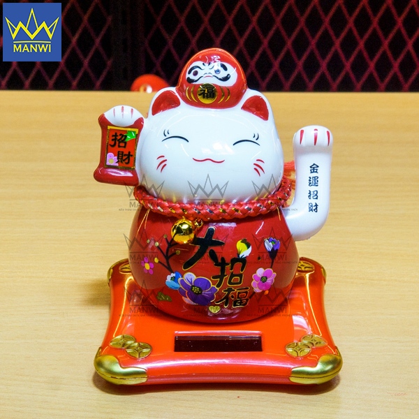 Mèo Thần Tài Vẫy Tay Khai Sắc Daruma - Đỏ là chú mèo có thiết kế đặc biệt. Khi có có hai biểu tượng may mắn trong cùng một vật thể. Ở Nhật bản, có 2 vật phong thuỷ rất nổi tiếng đó là Maneki-nekoDaruma. Cả hai đều có công dụng ban phước tài lộc, may mắn cho người sở hữu. Nhưng nay nó đã được xuất hiện chung với nhau, hứa hẹn sẽ mang lại rất nhiều điều tốt đẹp đến với gia chủ. Là món đồ phong thủy giá trị nên Manwi luôn cẩn thận, đảm bảo chất lượng đến với khách hàng. Ngoài ra, mèo thần tài còn được tặng kèm theo chiếc hộp rất xinh; chiếc hộp có những hoa văn thích hợp để làm quà tặng trong những dịp đặc biệt.