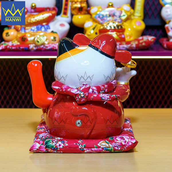 • Tay trái của chú mèo vẫy tay liên tục mượt mà với bộ khung chắc chắn cùng với dòng chữ “Kim Vận Phát Tài” với ý nghĩa liên tục mời gọi may mắn, tiền tài của cải dồi dào.