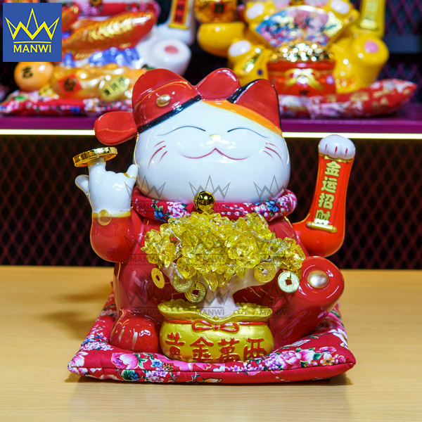 Mèo Thần Tài Vẫy Tay Tài Lộc May Mắn có nguồn gốc đến từ Nhật Bản, là một nơi đầy tính ngưỡng văn hóa với nhiều loại hình nghệ thuật khác nhau. Nổi trội nhất là nghệ thuật làm gốm Mèo thần tài nekko, tương truyền rằng, khi xưa có một chú mèo đã cứu sống một vị lãnh chúa trong gang tấc, từ đó người ta truyền tai nhau về chú mèo có thể mang lại may mắn cho người sở hữu. Chính vì vậy, mèo thần tài dần trở thành văn hóa của sự may mắn và dần phổ biến ở các nước phương Đông. Vì là biểu tượng của sự may mắn nên Mèo Thần Tài ở Manwi được chọn lộc kĩ lưỡng cẩn thận về chất lượng của sản phẩm, luôn đảm bảo nét đẹp nguyên thủy của chú mèo khi đến tay khách hàng. Ngoài ra Mèo Thần Tài còn được tặng kèm hộp đựng rất thích hợp để làm quà tặng.