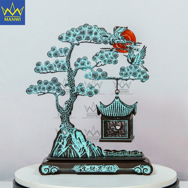 Lư Xông Trầm Tài Lộc Hội Tụ Xum Xuê - Nâu Đồng có một thiết kế vô cùng độc đáo với hình dáng thân cây cao khỏe dang rộng tán lá ra khắp nơi tượng trưng cho sự phát triển và thịnh vượng, trong phong thủy chim hạc là một biểu tượng cho những điềm lành cát tường và trường thọ. Từ đó hình ảnh đôi hạc trong thiết kế như một lời chúc cho gia chủ được khỏe mạnh và trường thọ cùng những người đồng hành để phát triển vươn tầm ra xa hơn nữa.